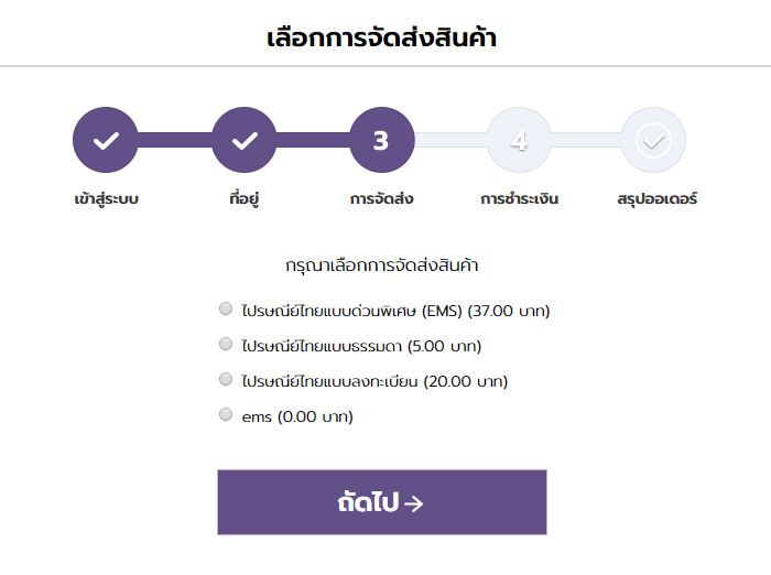 5. จากนั้นเลือกประเภทการจัดส่ง และกด ถัดไป