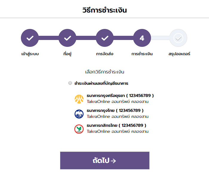 6. จากนั้นเลือกช่องทางการชำระเงิน และกด ถัดไป